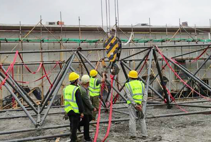 4、華亭煤礦網(wǎng)架工程在開工時(shí)要保證水、電、道路的三通,應(yīng)確保構(gòu)件運(yùn)輸?shù)轿坏牡缆窌惩ā?/span>
